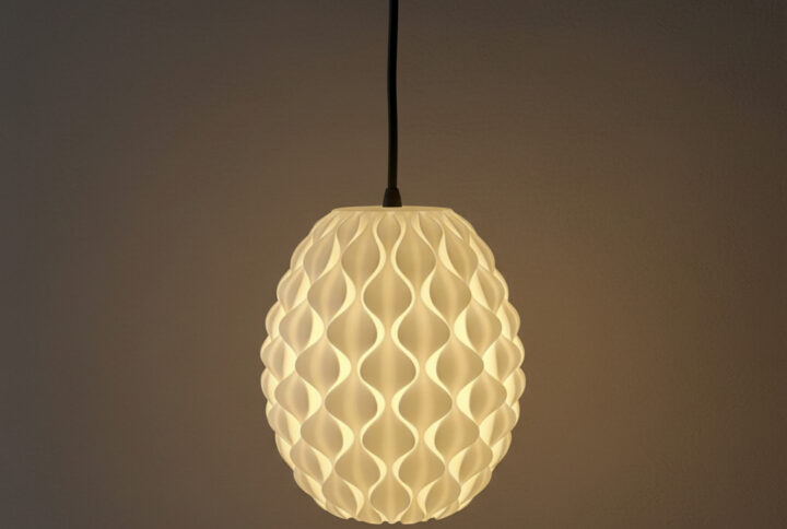 This 3D-printed pendant lamp features a smooth wave-patterned shell that diffuses a warm, soothing glow. Designed to elevate modern interiors, it adds a touch of elegance and cozy ambience to any room.